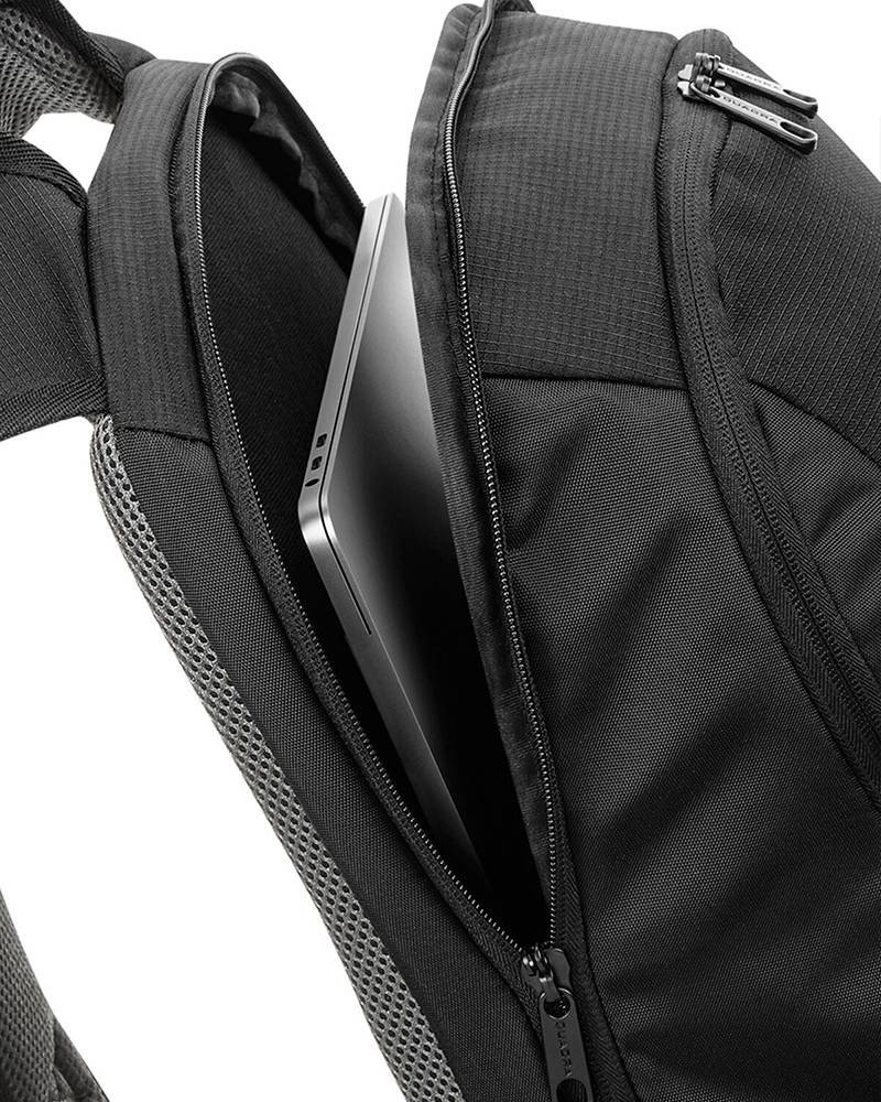 Zaino VESSEL SLIMLINE laptop backpack in tessuto 100% 600D micro poliestere rip-stop. Zaino compatibile con laptop fino a 15,6", scomparto imbottito per laptop con accesso esterno, tasche laterali con zip, tasca per laptop rivestita, tasca interna per oggetti di valore con cerniera. Organiser con cavo elasticizzato, sezione organizer interno, pannello posteriore ergonomico, imbottito, puller con cerniera e blocco, fibbia con chiusura ad innesto e con spalline imbottite e regolabili. Etichetta removibile TearAway per facilitare il rebranding. Dimensioni: 46x30x18. Capacità: 16 litri. Area di stampa massima: 15x28 cm.