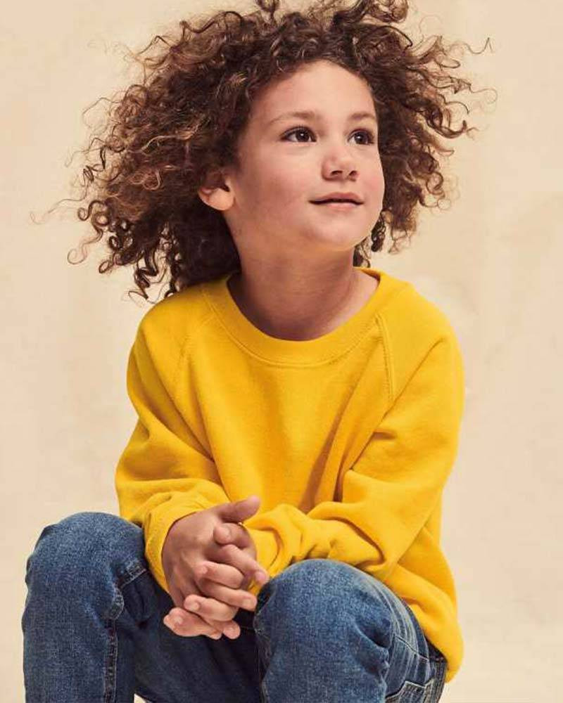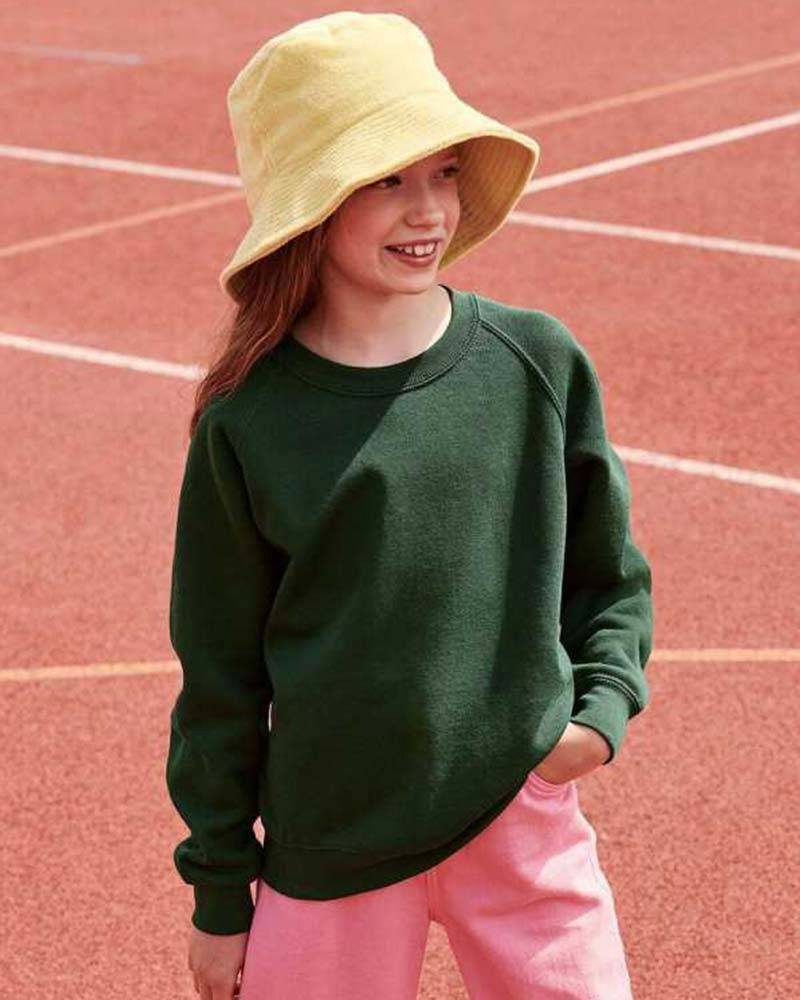Felpa KIDS CLASSIC RAGLAN, in tessuto 80% cotone 20% poliestere 280 gr/mq colorato, 260 gr/mq grigio melange, tessuto felpato internamente.